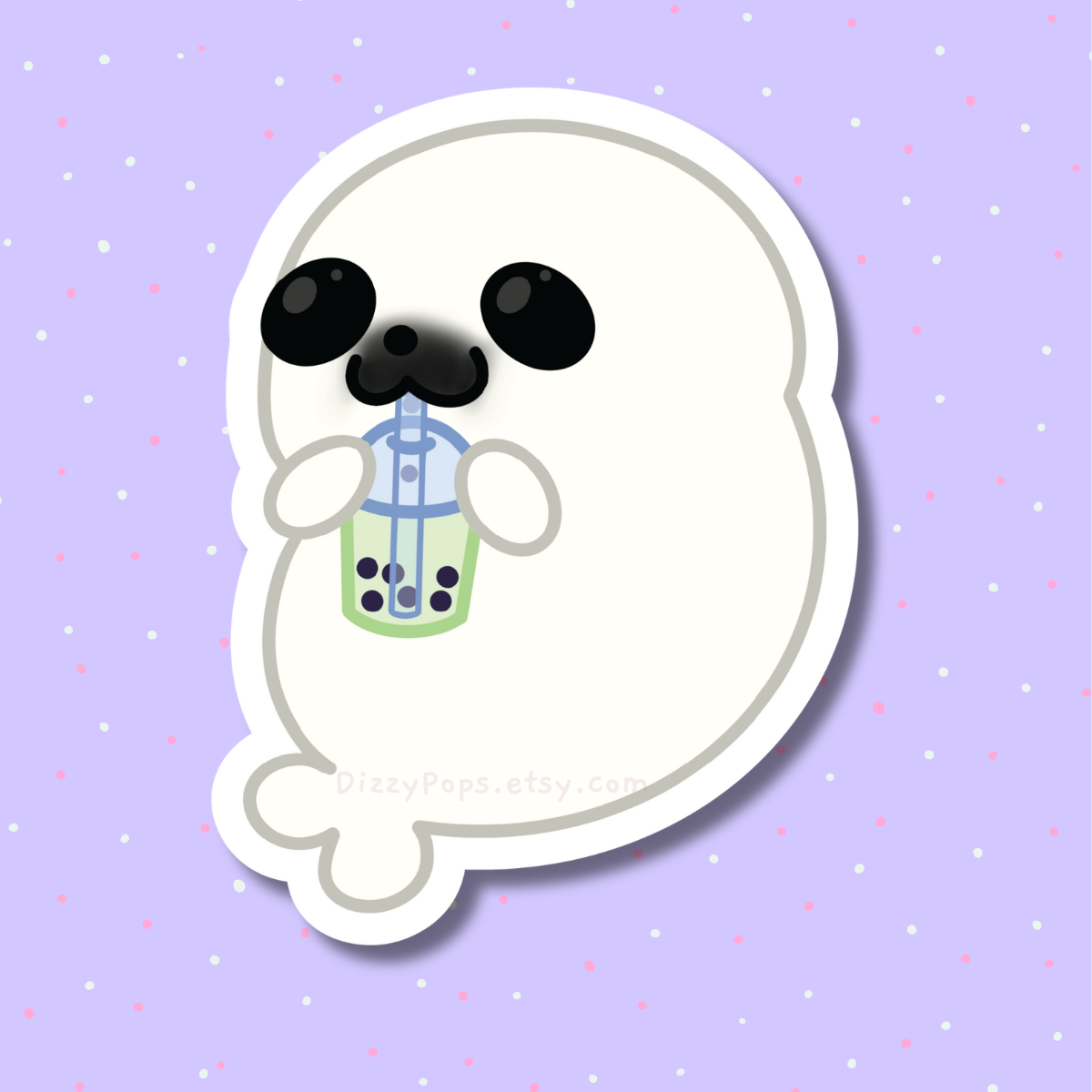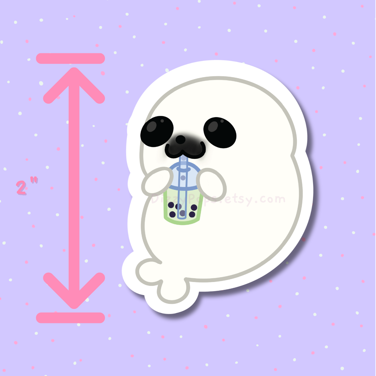 Super Cute Boba Seal Sticker! Stick this sticker on your phone, laptop, or water bottle- made with durable material that is water and UV resistant