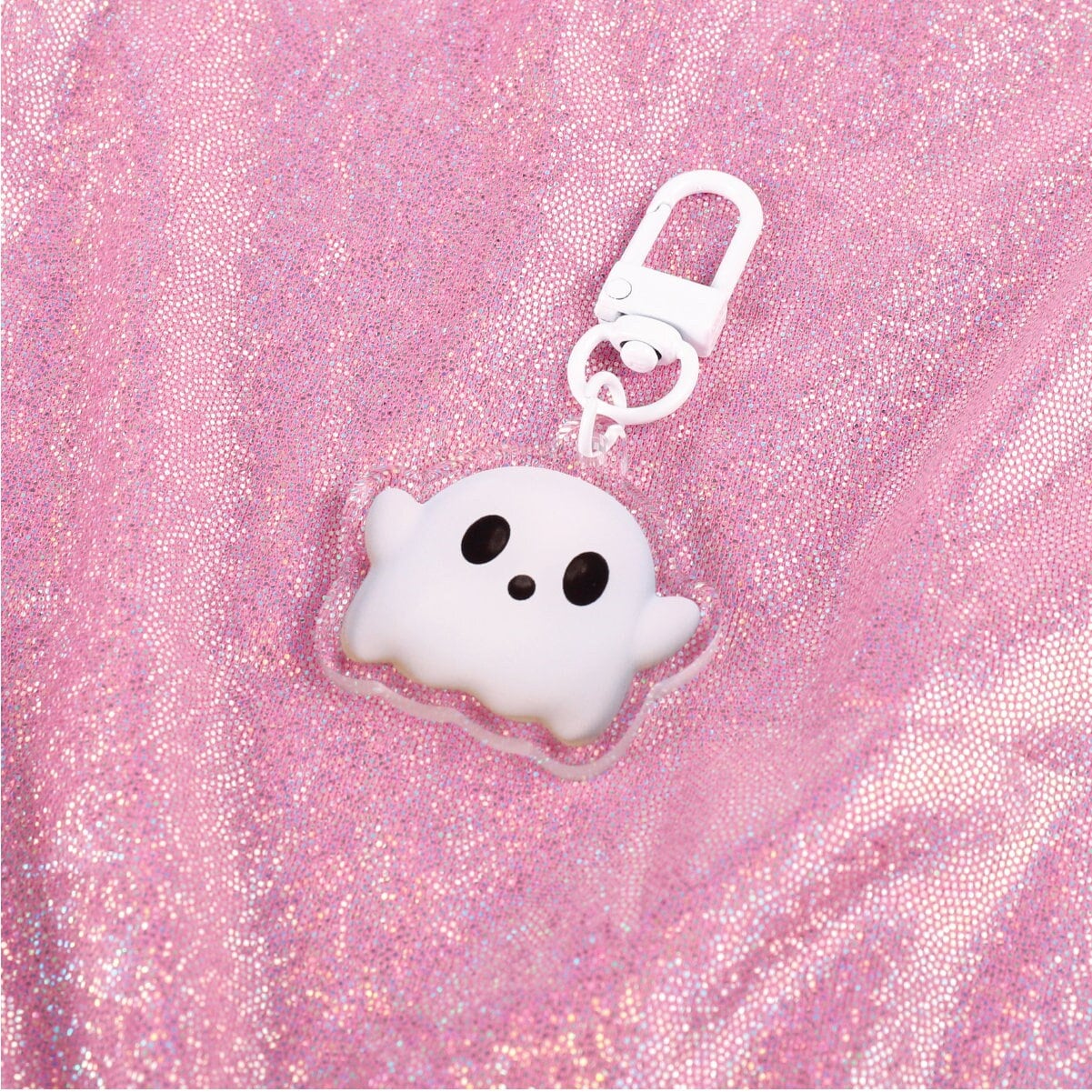 Super cute ghost booty acrylic keychain! Attach this to your bag, water bottle, keys, and more!
