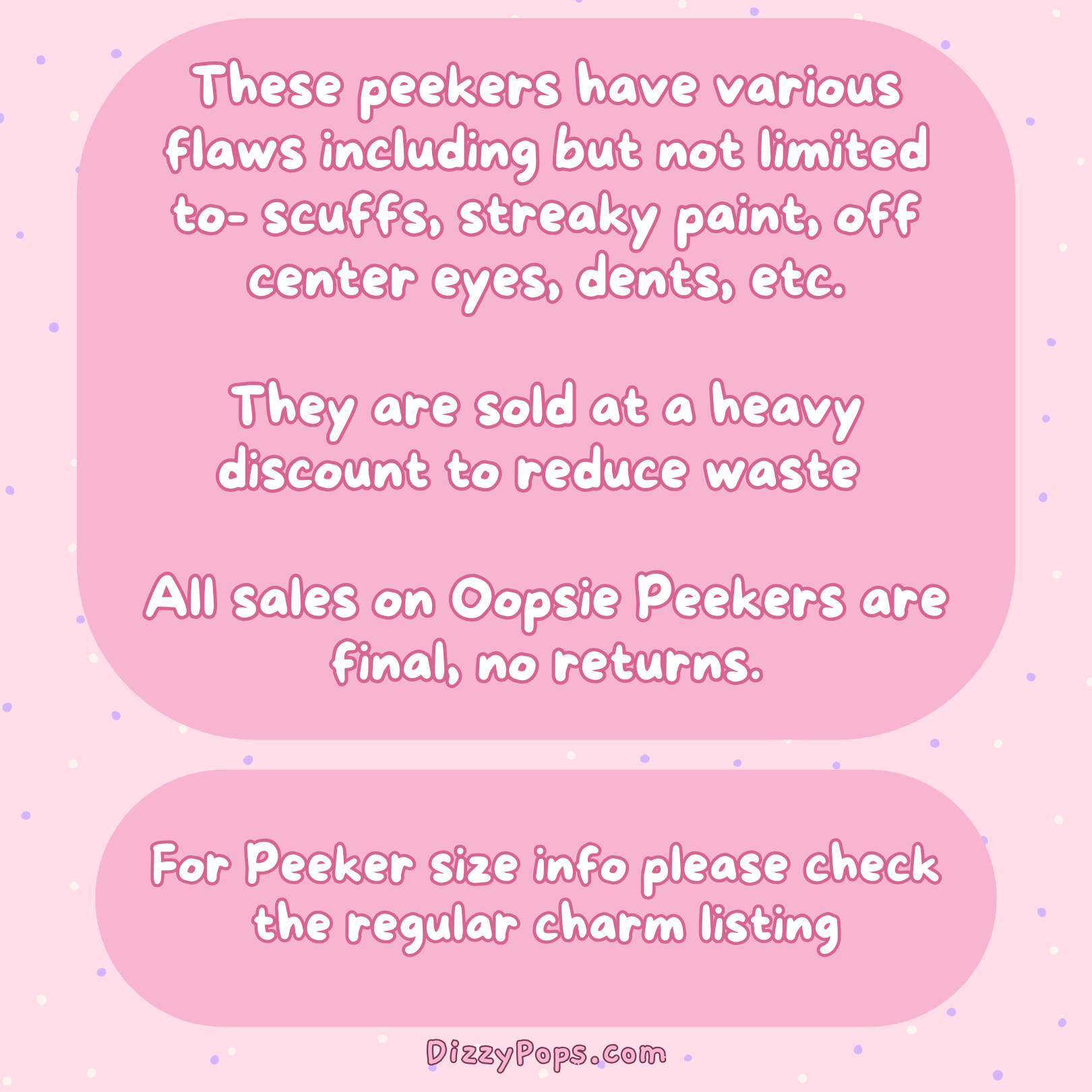 They are sold at a heavy discount to reduce waste- All sales on Oopsie Peekers are final, no returns.