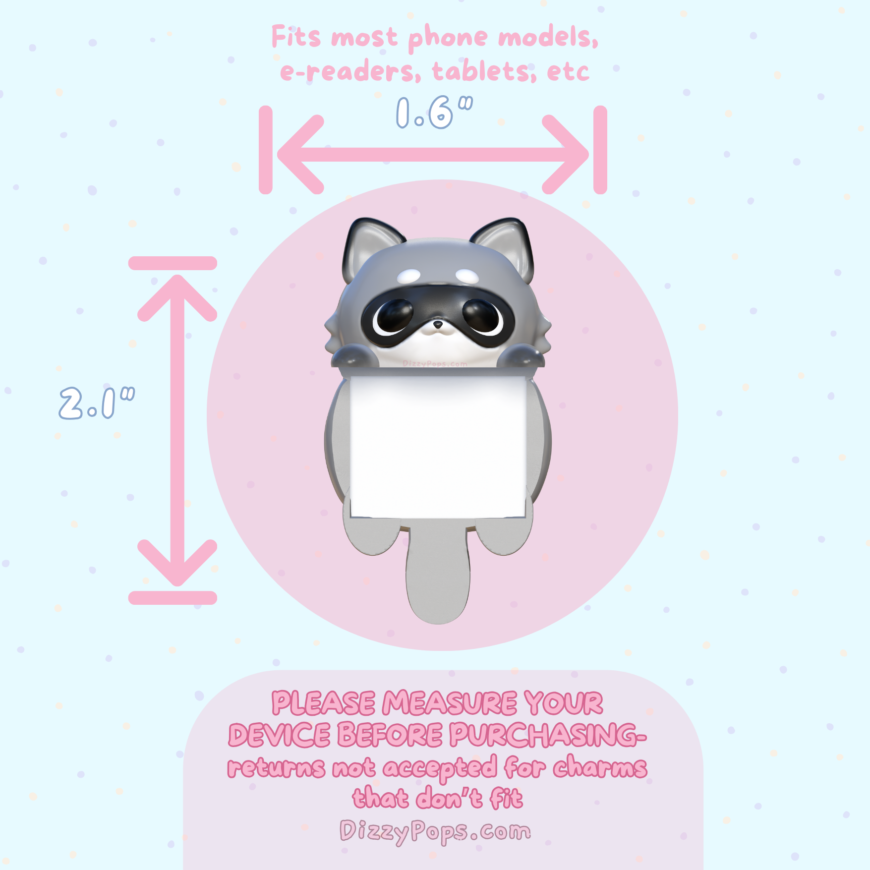 A super cute Raccoon Peeker for your phone or other device! This charm has strong nano tape on the tummy for extra secure hold for every day use.